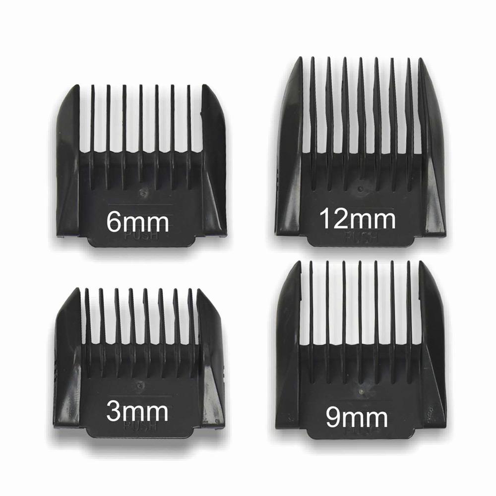 - Accessories: 2 independent batteries, 4 accessory combs (3 mm, 6 mm, 9 mm and 12 mm), lubricating oil and cleaning brush.